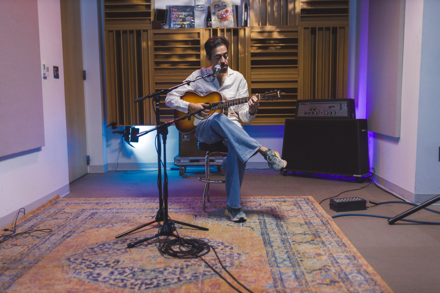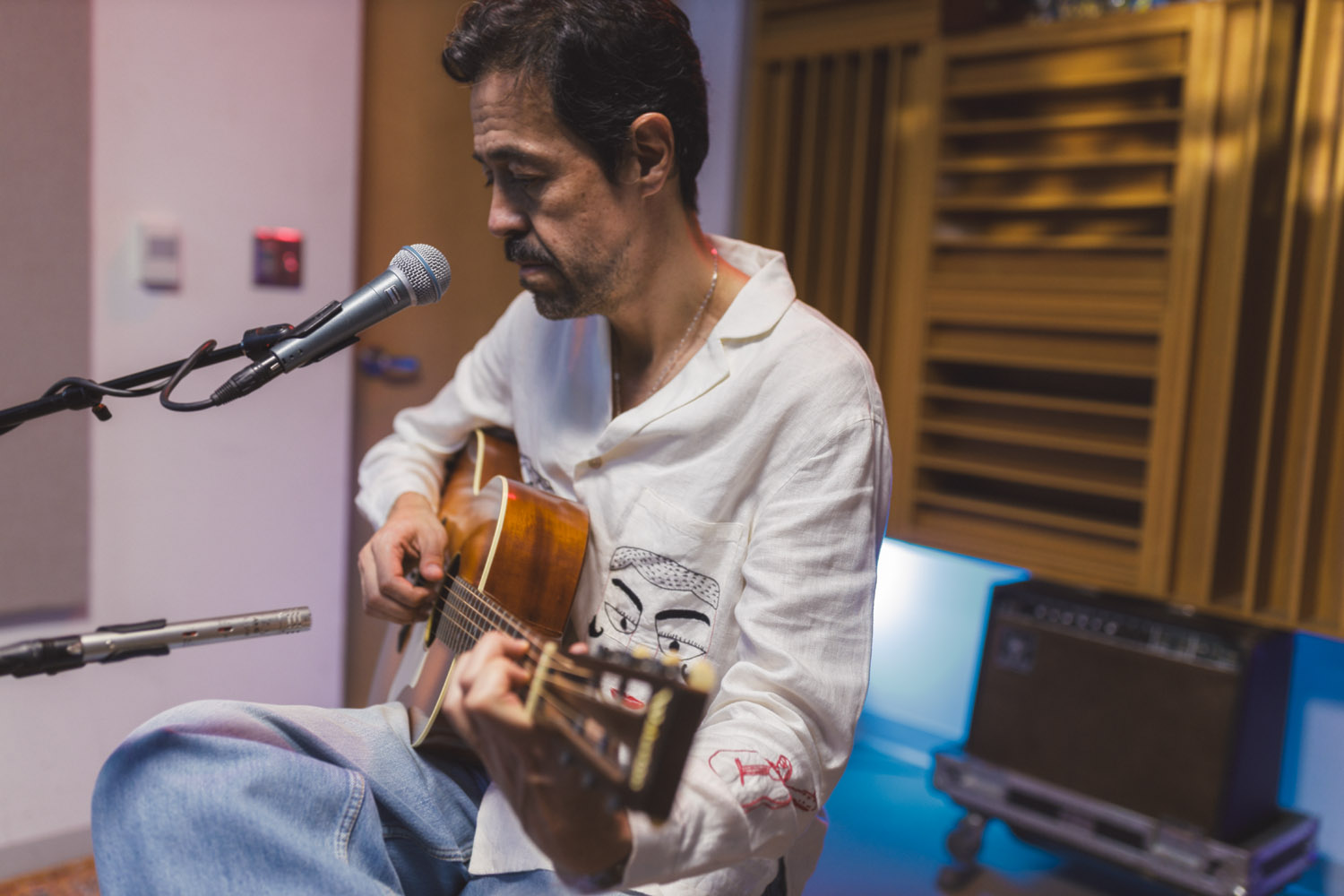 When Meme Del Real walked back into The SoCal Sound studios, it felt like a reunion. A bit longer than a year ago, Meme was here alongside his legendary band Café Tacvba, one of Mexico’s most innovative and genre-defying groups. For this visit, the acclaimed keyboardist, songwriter, and producer returned not as part of an ensemble — but as a solo artist discussing his new albume La Montaña Encedida with Nic Harcourt and performing 4 songs in and exclusive acoustic setting.